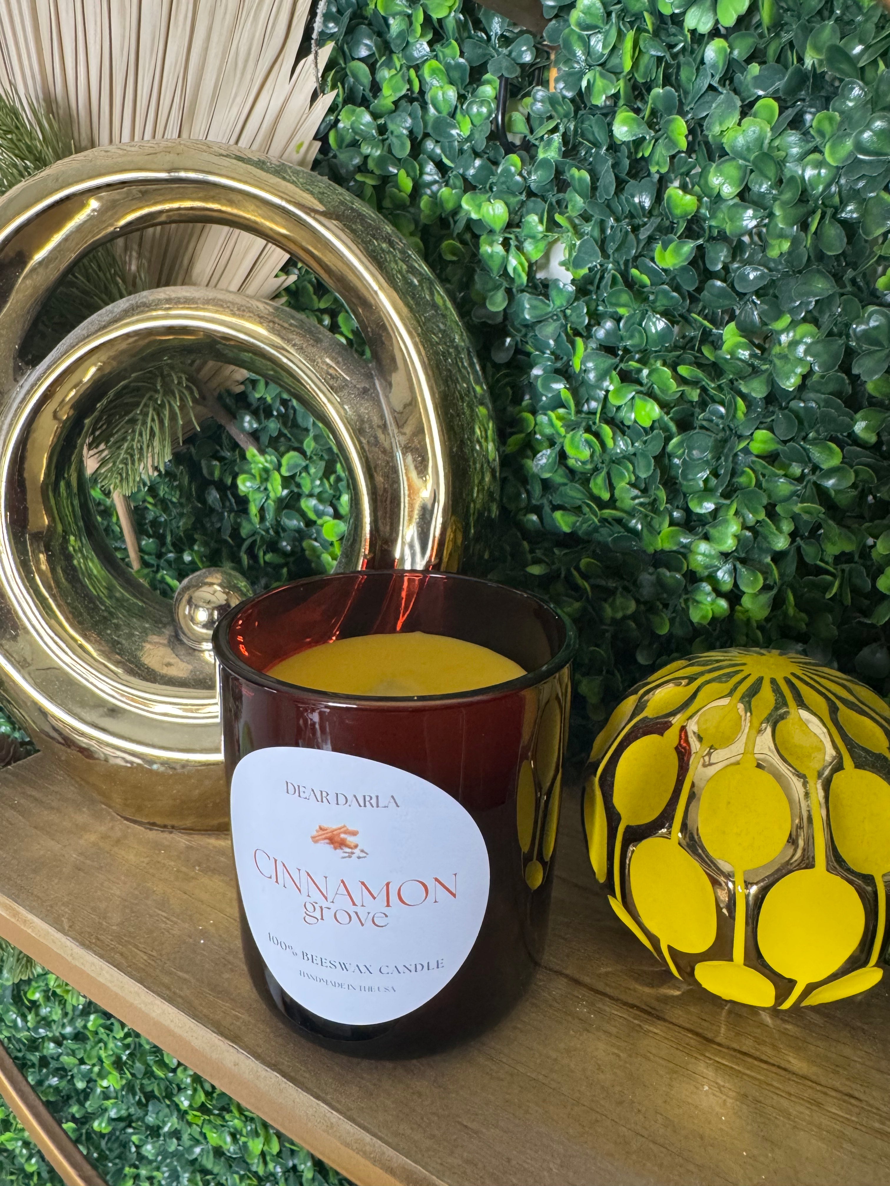 Cozy and comforting, Cinnamon Grove blends warm cinnamon spice with the natural sweetness of beeswax. Light it to bring a sense of calm and rustic charm to any space.