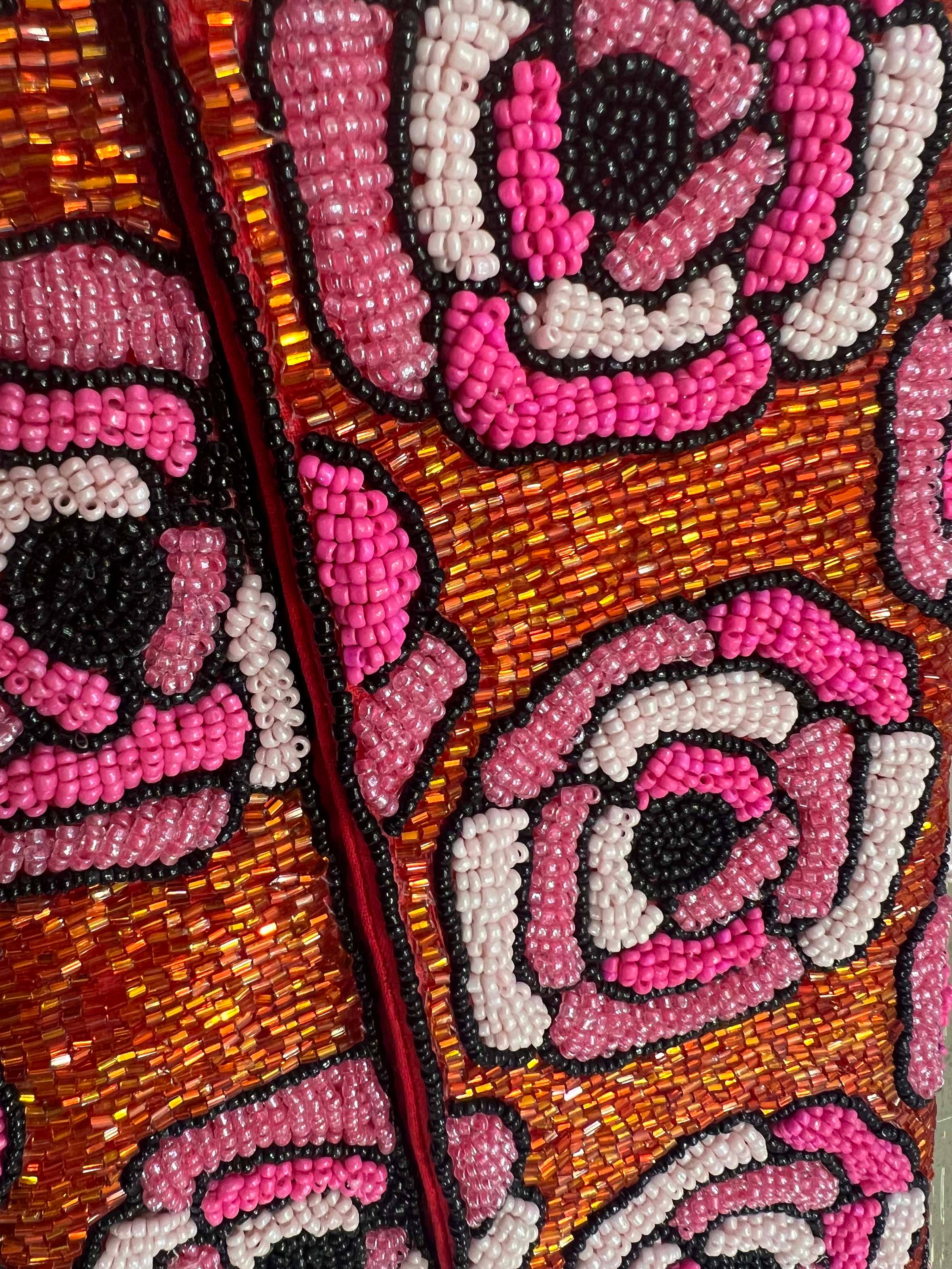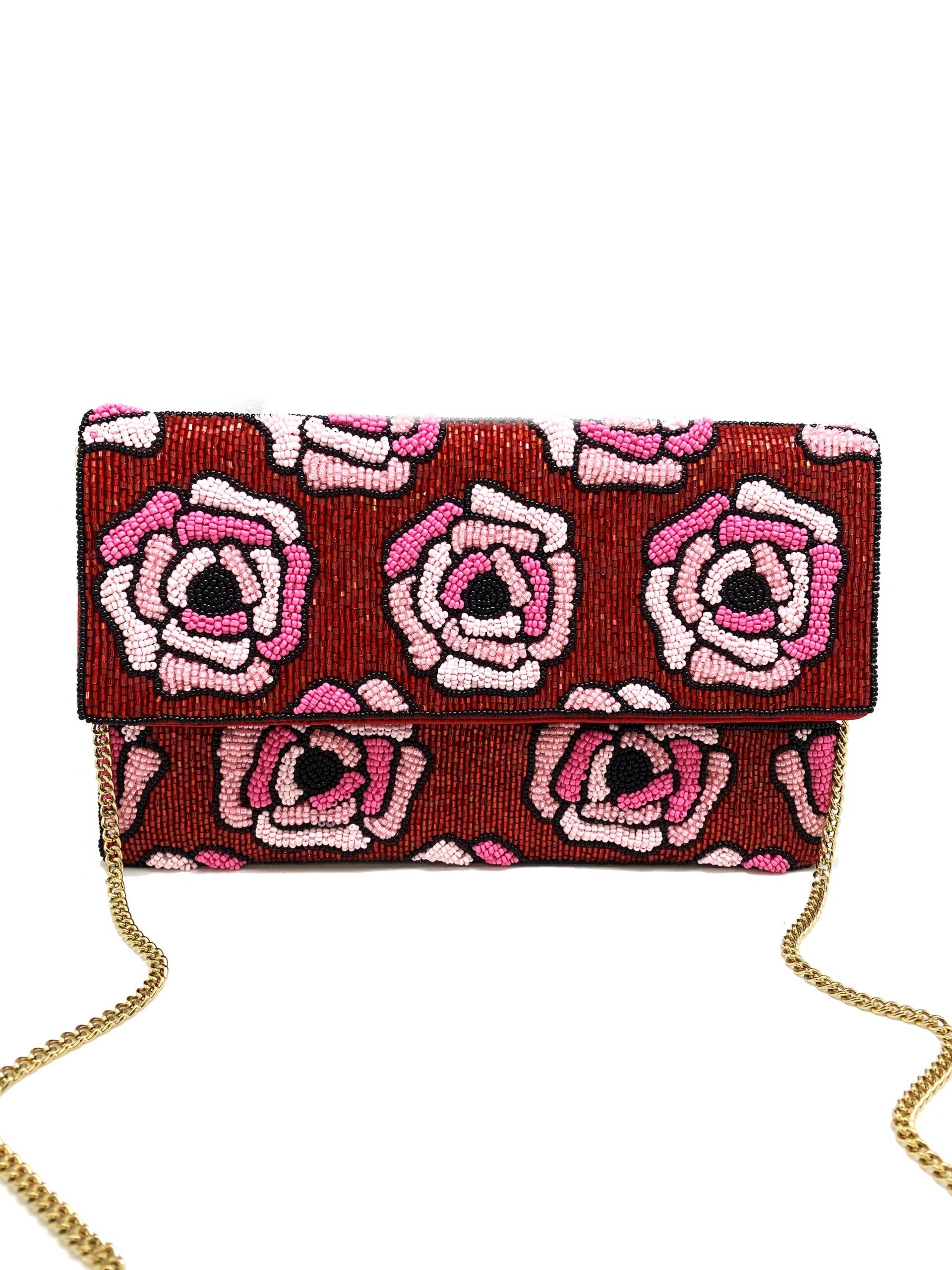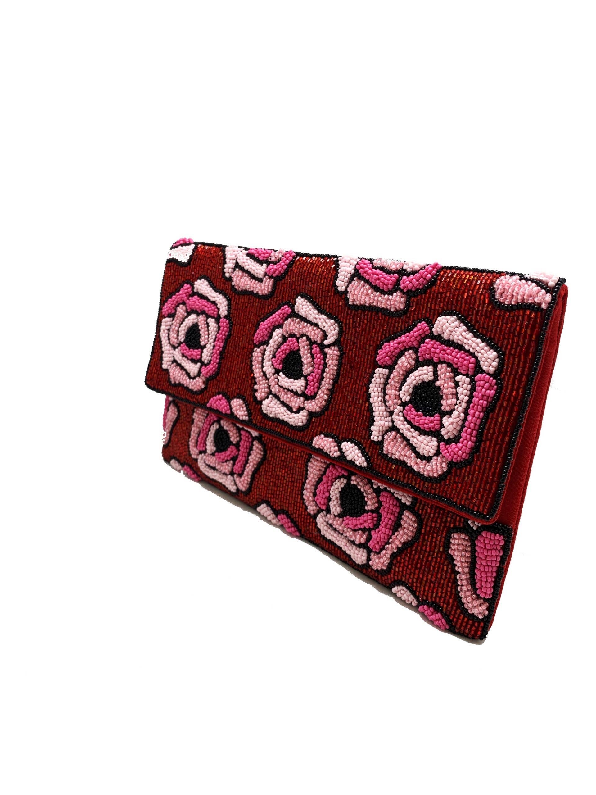 Turn heads with this stunning handmade beaded clutch featuring a bold burgundy and red rose design. Every piece is carefully crafted with love and detail, making it truly one of a kind.