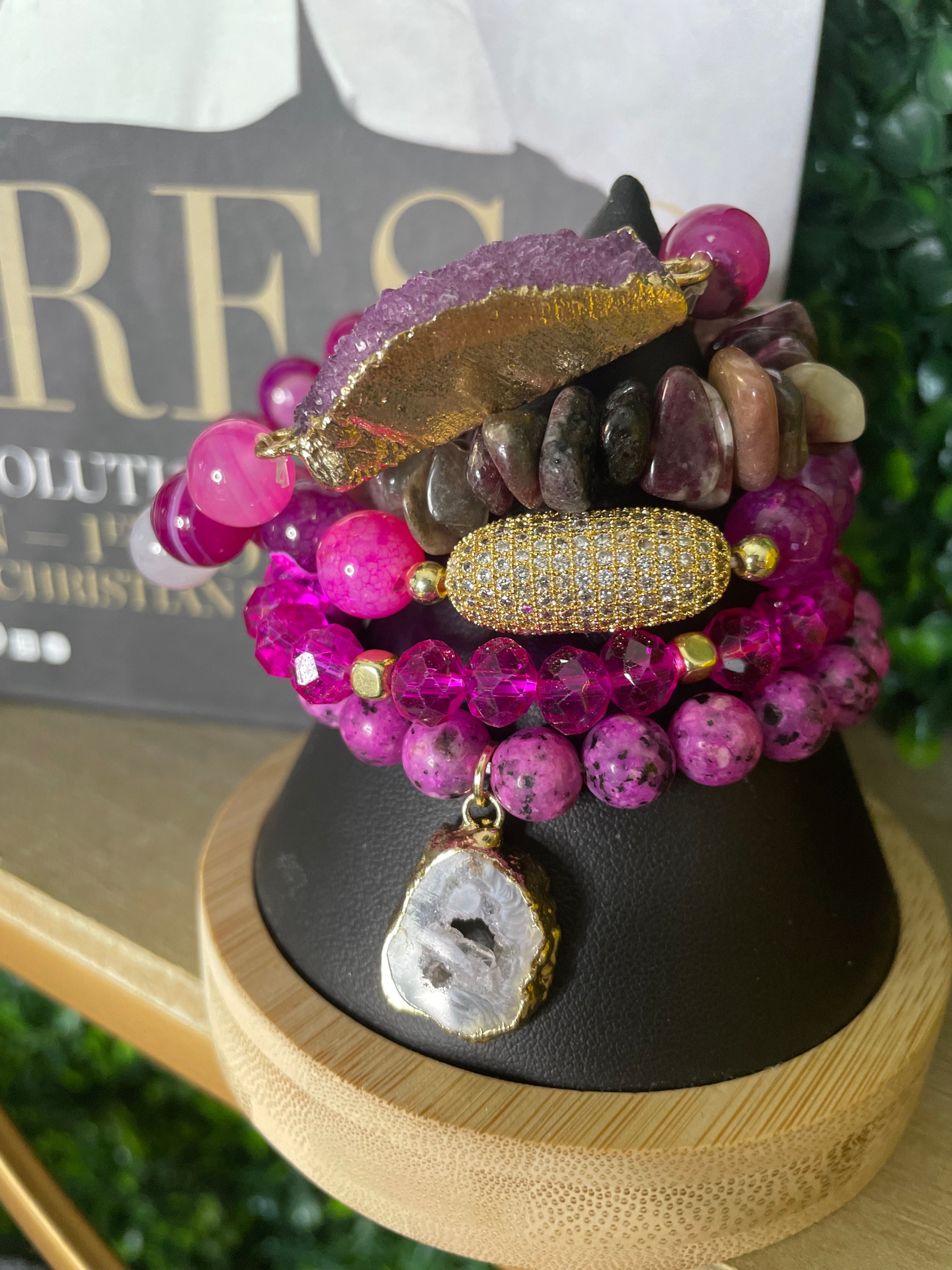 Elevate your style with our Pink/Magenta Bracelet Stack. These bracelets feature stunning shades of pink and magenta, perfect for adding a pop of color to any outfit. Crafted with quality materials, this stack is both fashionable and durable. Upgrade your accessory game today.