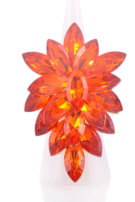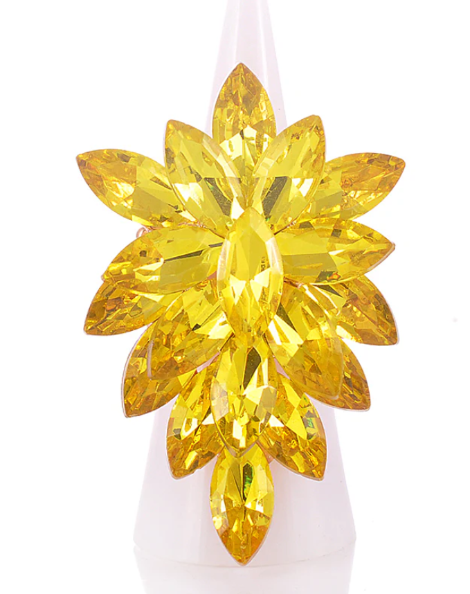 This elegant CRYSTAL STRETCH RING features a 2" design that effortlessly stretches to fit most finger sizes. The stunning gold and yellow crystals add a touch of glamour and sophistication to any outfit. Expertly crafted, this ring boasts both durability and style for a timeless accessory.