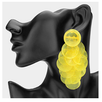 Expertly crafted for a modern and glamorous look, our Oversized Transparent Colored Resin Disc Layered Chandelier Earrings will elevate any outfit. Measuring 2.25" by 3.75", these earrings feature post backs and are lead and nickel compliant for comfortable wear. Stand out with these bold and lightweight chandelier earrings.